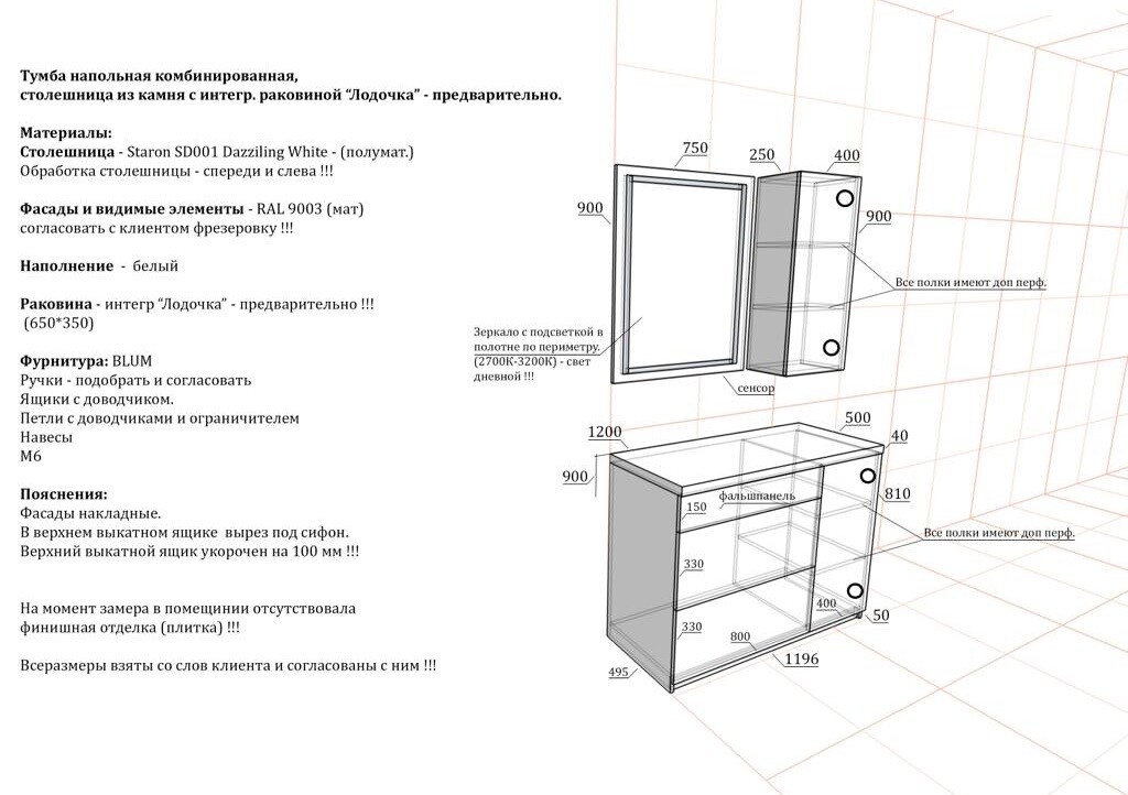 Тумба с раковиной на заказ в СПБ